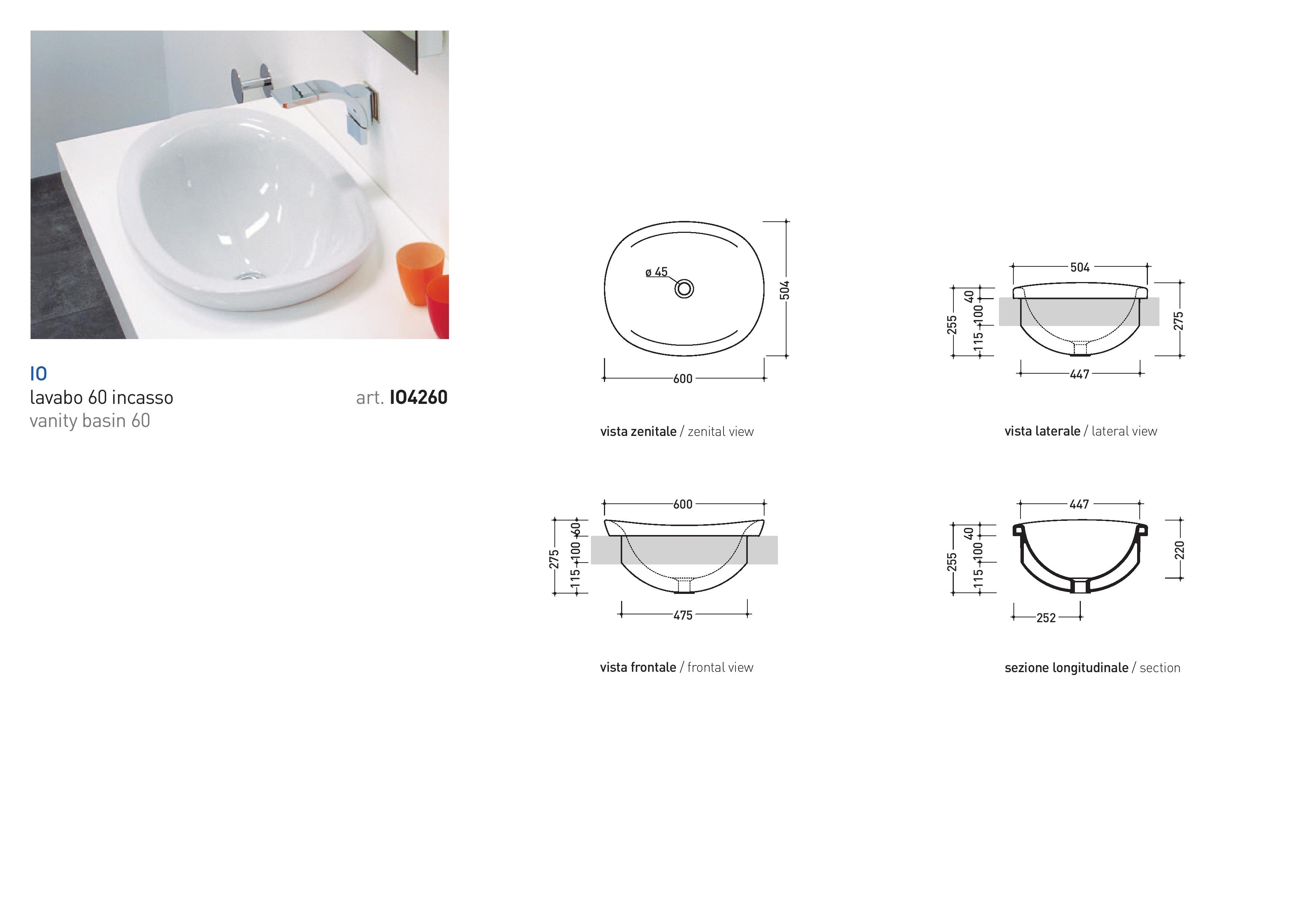 Flaminia IO Umywalka 60x55xh28 cm wpuszczana w blat biała IO4260