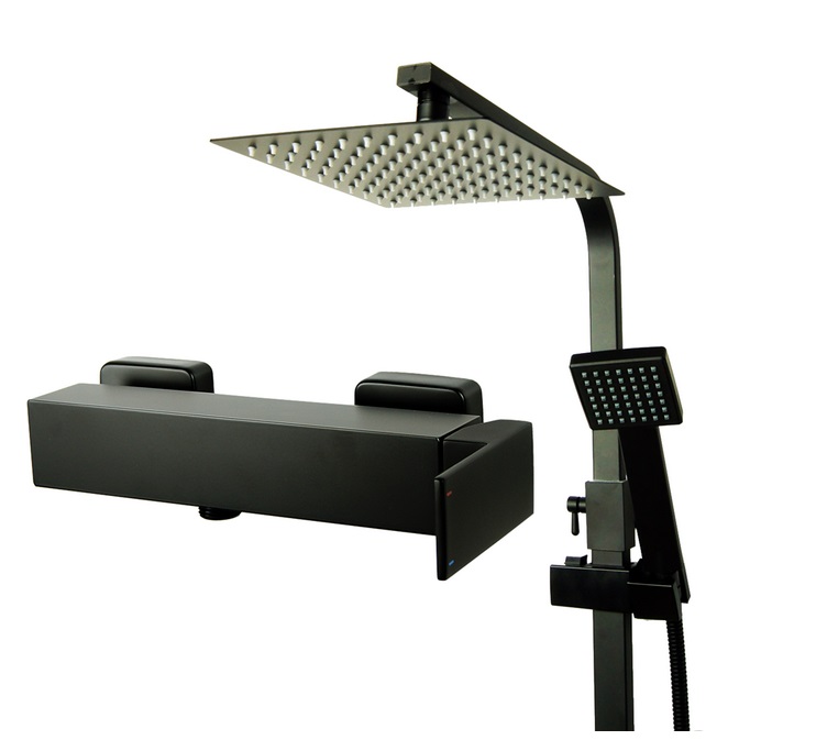 QATRO Zestaw natryskowy ścienny z deszczownicą i słuchawką prysznicową Czarny AL1844504NS
