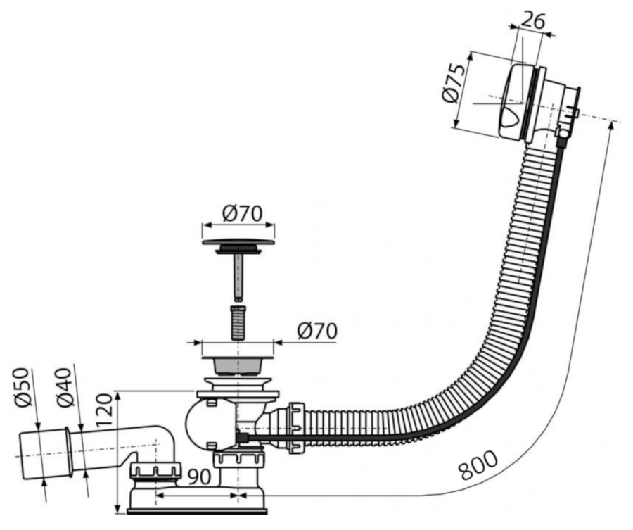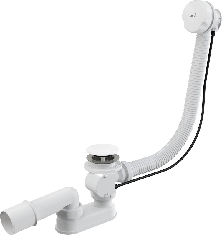 Alca PLAST Syfon wannowy odpływowo-przelewowy 80 cm z korkiem automatycznym biały A51BM-80