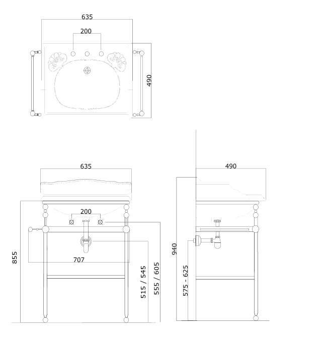 Konsola w kolorze chrom, możliwość zamówienia w kolorach: incalux (9099), złoto (9099-ORO), na zapytanie