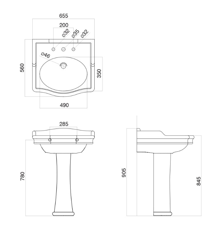 Możliwość zamówienia umywalki z trzema lub dwoma otworami (proszę o podanie w zamówieniu ile otworów na baterię ma posiadać umywalka)