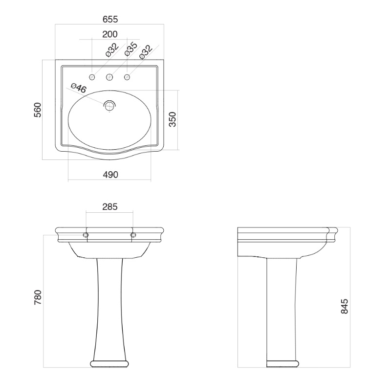 Możliwość zamówienia umywalki z trzema lub dwoma otworami (proszę o podanie w zamówieniu ile otworów na baterię ma posiadać umywalka)