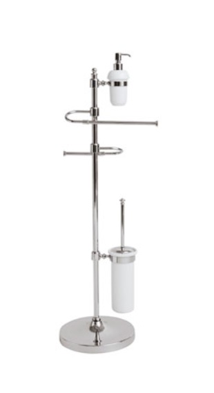 Gentry Home Unique Wolnostojący wieszak na ręczniki ze szczotką do WC, z dozownikiem do mydła w płynie Forrest Chrom 10615