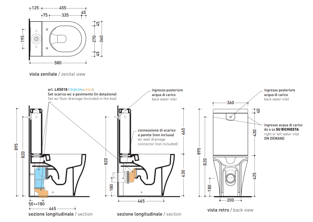 dołączone połączenia do drenażu podłogowego (TR38CON + LKR40)