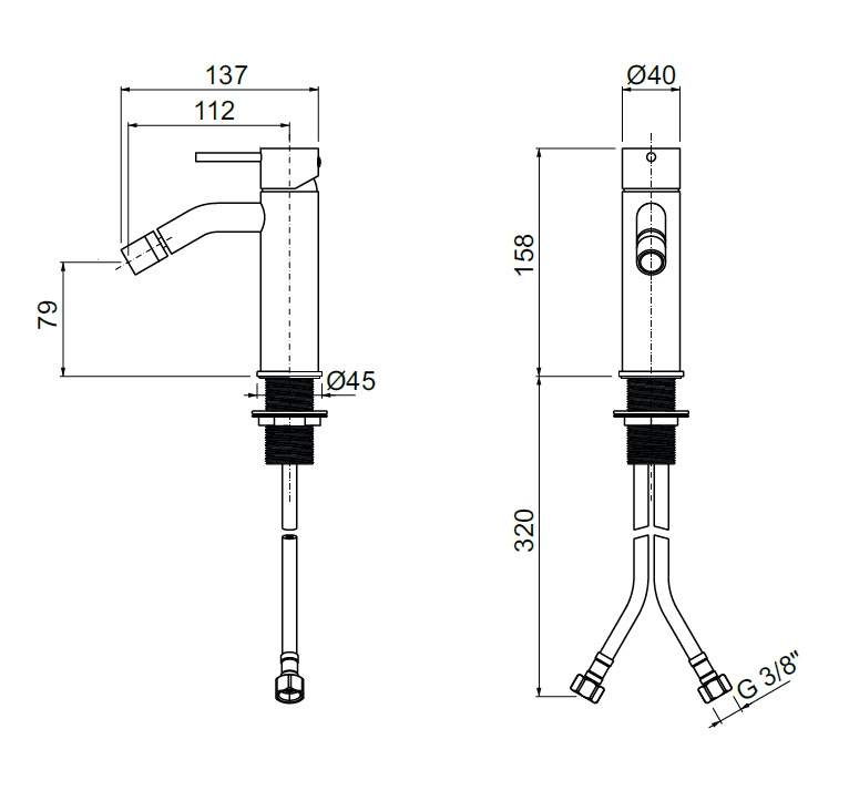 Oioli LIFE Bateria bidetowa jednouchwytowa Champagne PVD 25905-PVD88