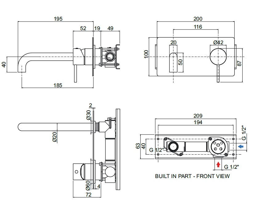 wysięg wylewki: 185 mm