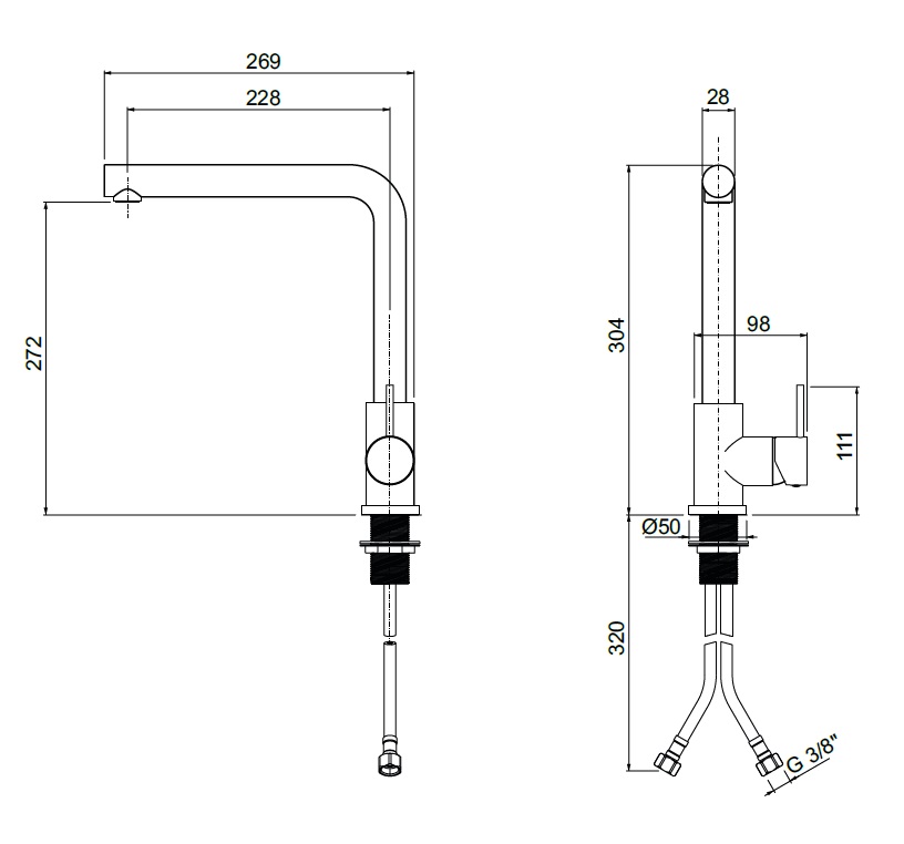 Oioli LIFE Bateria zlewozmywakowa jednouchwytowa 1-otworowa Brushed stainless steel 25946