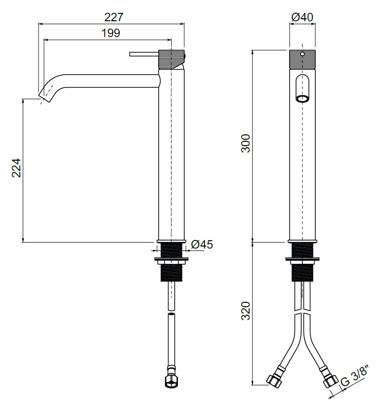wysokość wylewki: 224 mm