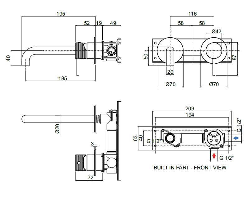 Oioli LIFE 25L Bateria umywalkowa podtynkowa jednouchwytowa Brushed stainless steel 25902L/A