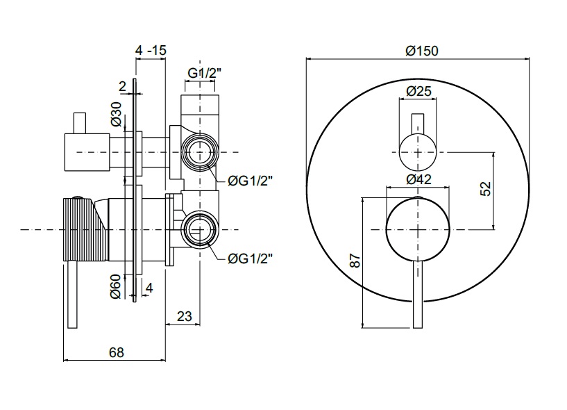 Oioli LIFE 25L Bateria natryskowa podtynkowa z 2-kierunkowym przełącznikiem Brushed stainless steel 25921L
