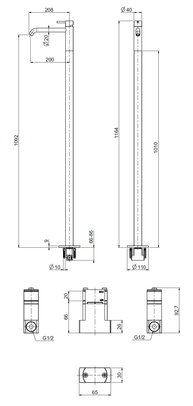 Oioli LIFE 25L Bateria umywalkowa wolnostojąca Brushed stainless steel 25903L/A
