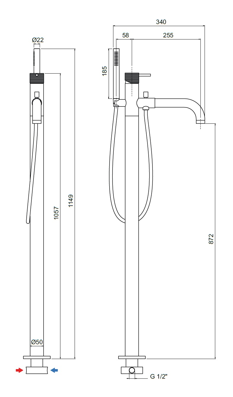 Oioli LIFE 25L Bateria wannowa wolnostojąca ze słuchawką prysznicową Brushed stainless steel 25908L