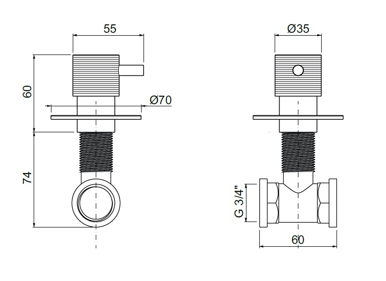 Oioli LIFE 25L Zawór podtynkowy 3/4" Brushed stainless steel 25586L
