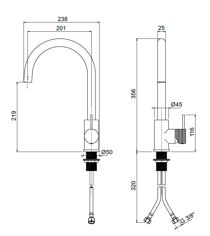 Oioli LIFE 25L Bateria zlewozmywakowa jednouchwytowa 1-otworowa Brushed stainless steel 25945L