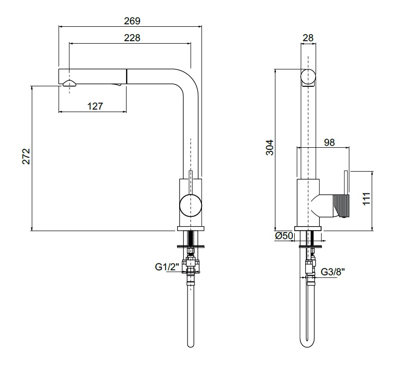 Oioli LIFE 25L Bateria zlewozmywakowa jednouchwytowa 1-otworowa Brushed stainless steel 25940L