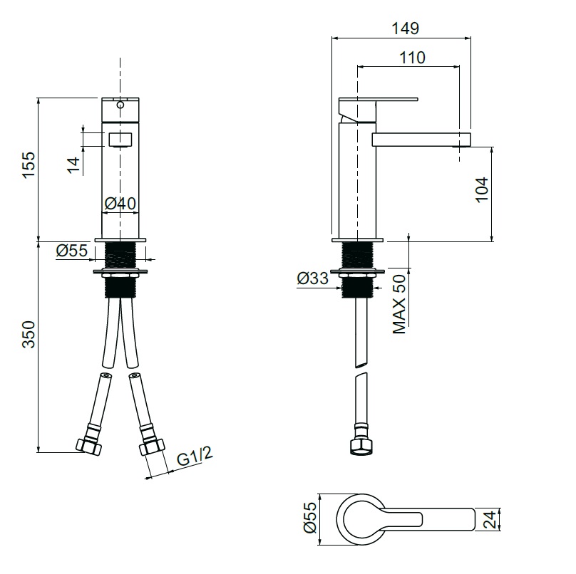 Oioli LIFE 26 Bateria umywalkowa jednouchwytowa Brushed stainless steel 26900