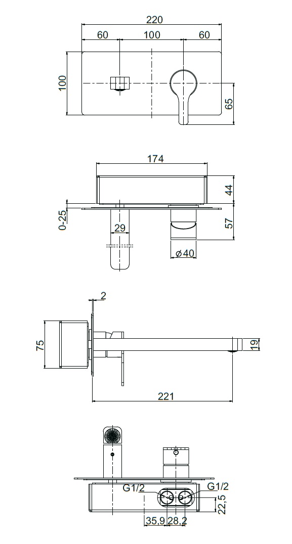 Oioli LIFE 26 Bateria umywalkowa podtynkowa jednouchwytowa Brushed stainless steel 26902