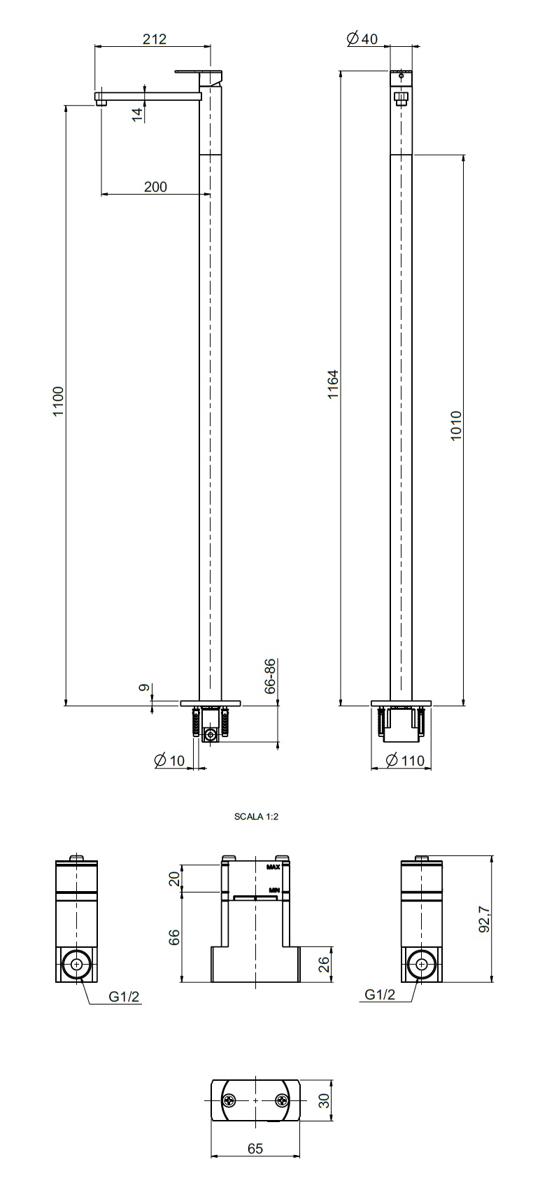 Oioli LIFE 26 Bateria umywalkowa wolnostojąca jednouchwytowa Brushed stainless steel 26903/A