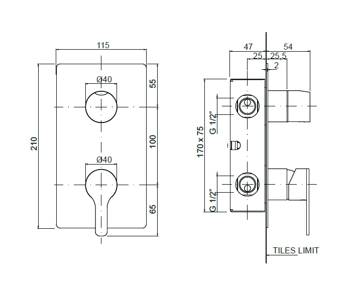 Oioli LIFE 26 Bateria natryskowa podtynkowa z 2-stronnym przełącznikiem Brushed stainless steel 26921