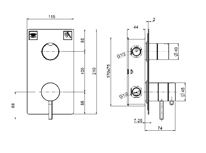 Oioli LIFE 26 Bateria natryskowa termostatyczna podtynkowa z 2-stronnym przełącznikiem Brushed stainless steel 26921-TERM 2V