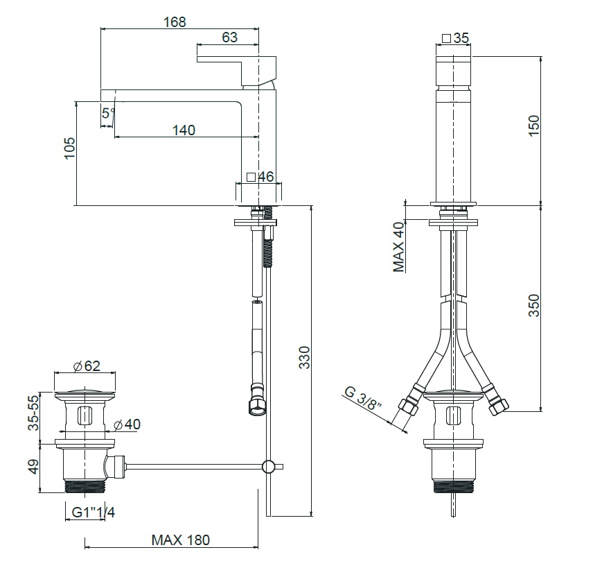 Oioli UNIKA Bateria umywalkowa jednouchwytowa z korkiem automatycznym Chrom 41500-BL