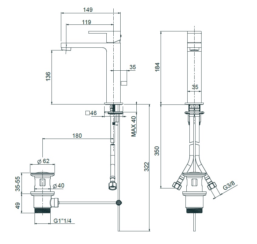 Oioli UNIKA Bateria umywalkowa jednouchwytowa z korkiem automatycznym Chrom 41503