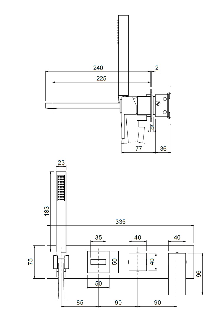 Oioli UNIKA Bateria wannowa podtynkowa ze słuchawką prysznicową Chrom 41509