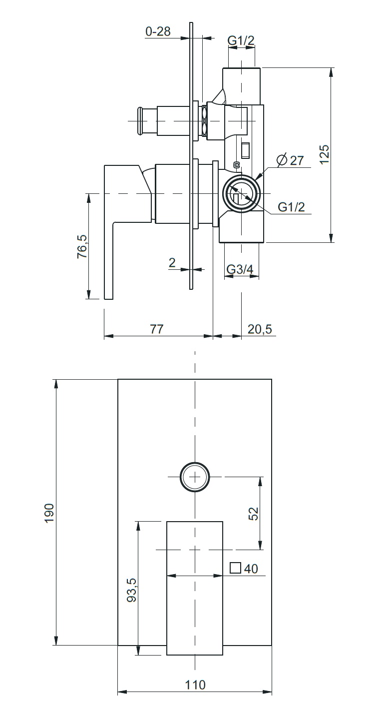 Oioli UNIKA Bateria natryskowa z przełącznikiem podtynkowa Chrom 41521