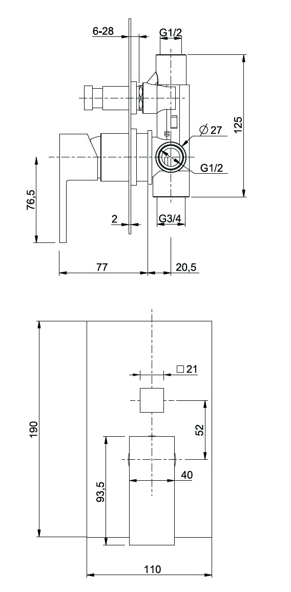 wysokość elementu podtynkowego: 125 mm