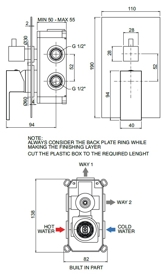 Oioli UNIKA Bateria natryskowa z 2 wyjściami i przełącznikiem podtynkowa Chrom 41522/2V