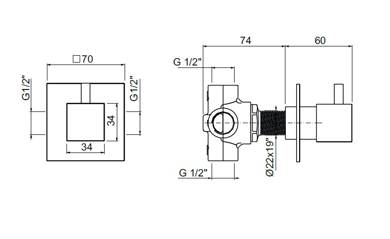 głębokość montażu: 74 mm
