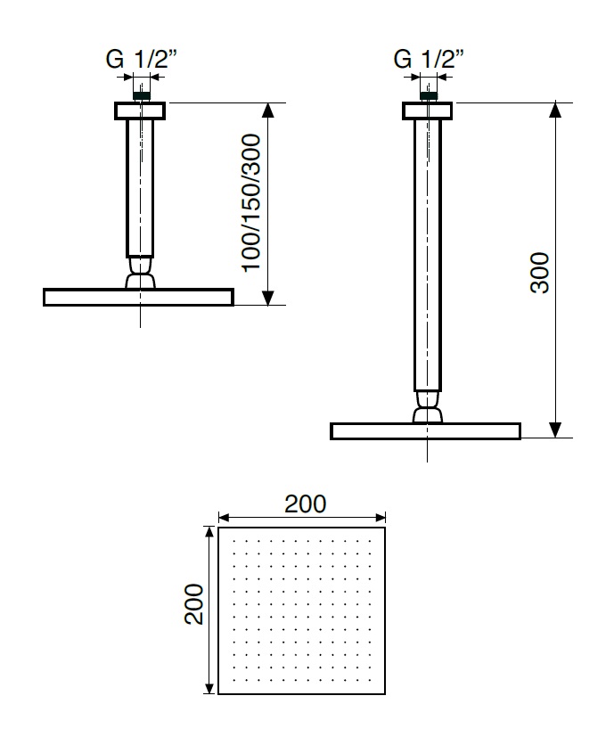 Oioli UNIKA Deszczownica 200x200 mm z ramieniem sufitowym Chrom 1909/INOX-200