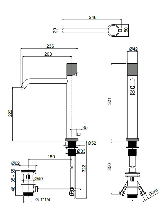 Oioli MICRO 80 Bateria umywalkowa jednouchwytowa Gold 21804TC-C02