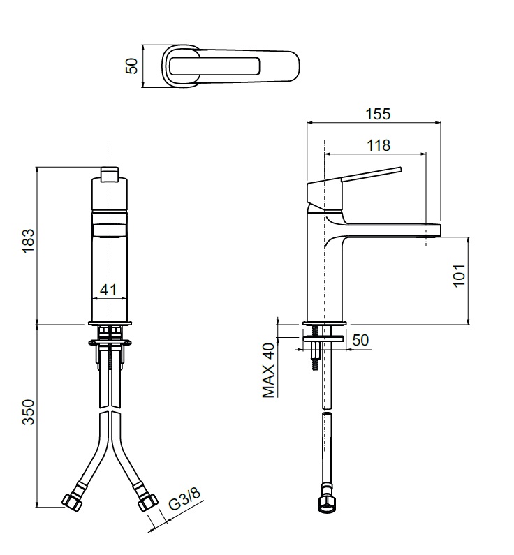 wysięg wylewki: 118 mm