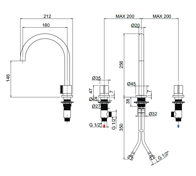 Oioli COMO Bateria umywalkowa 3-otworowa Matt Black 20766-C08