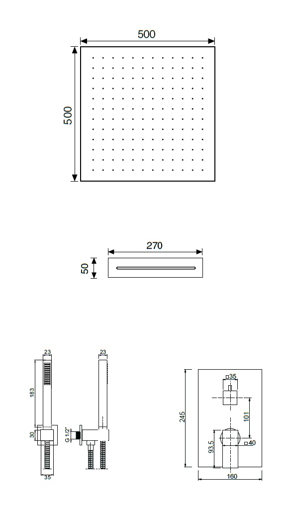 Oioli UNIKA Zestaw natryskowy podtynkowy ze słuchawką i deszczownicą Chrom KIT-3V500C