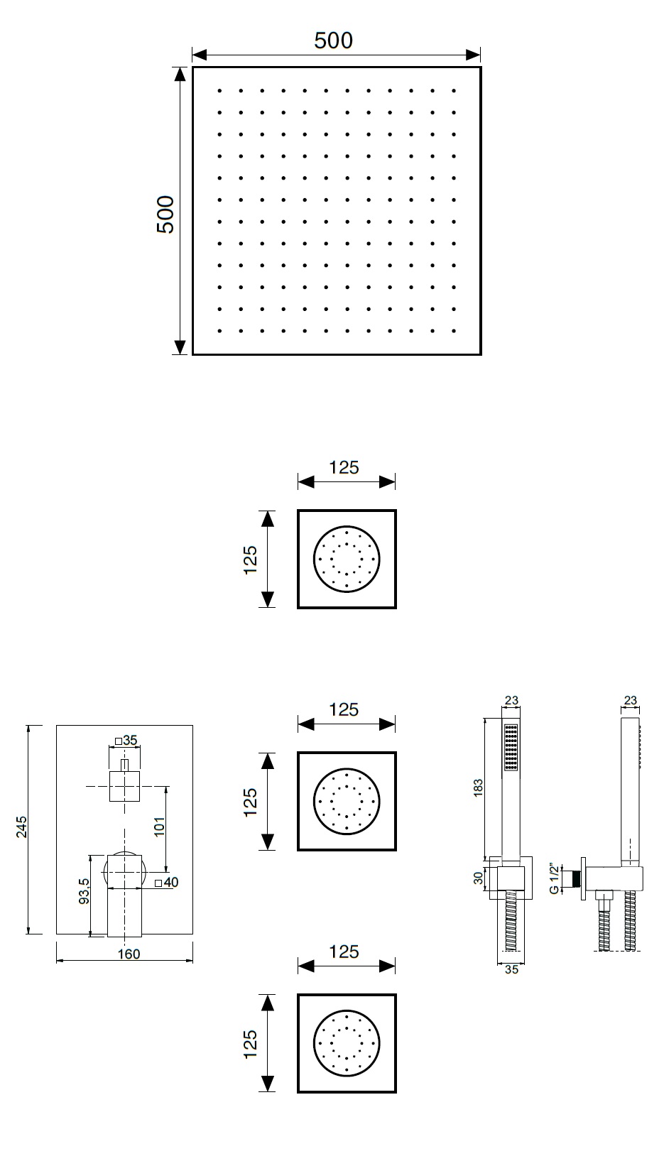 Oioli UNIKA Zestaw natryskowy podtynkowy ze słuchawką i deszczownicą Chrom KIT-3V500Q