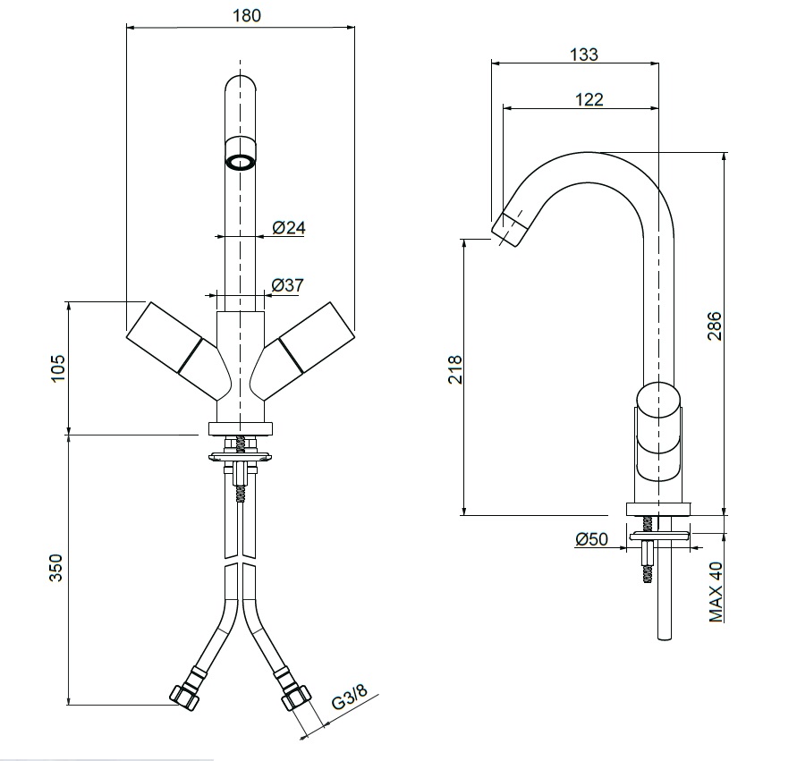 wysokość wylewki: 218 mm