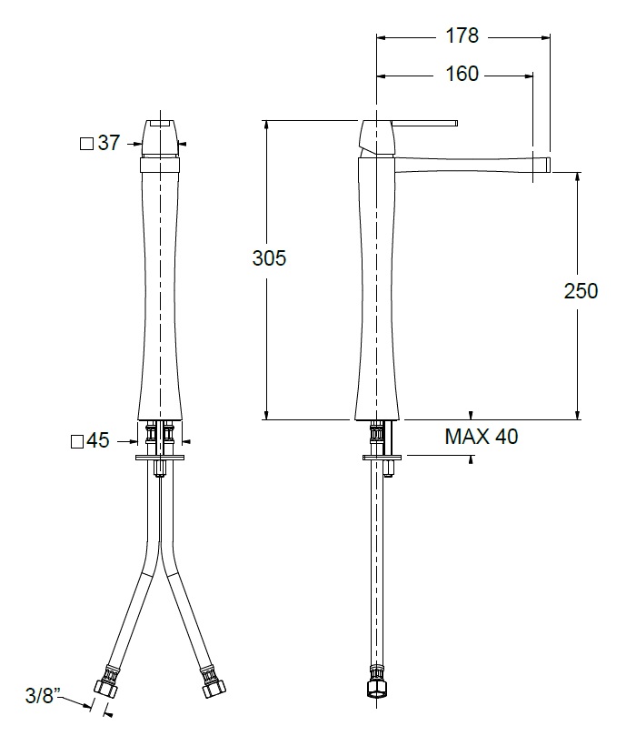 Oioli OPERA Bateria umywalkowa jednouchwytowa Brushed Nikel 60504-C04
