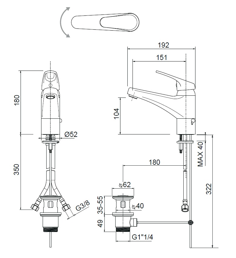 Oioli RIVER Bateria umywalkowa jednouchwytowa z korkiem automatycznym Chrom 2180