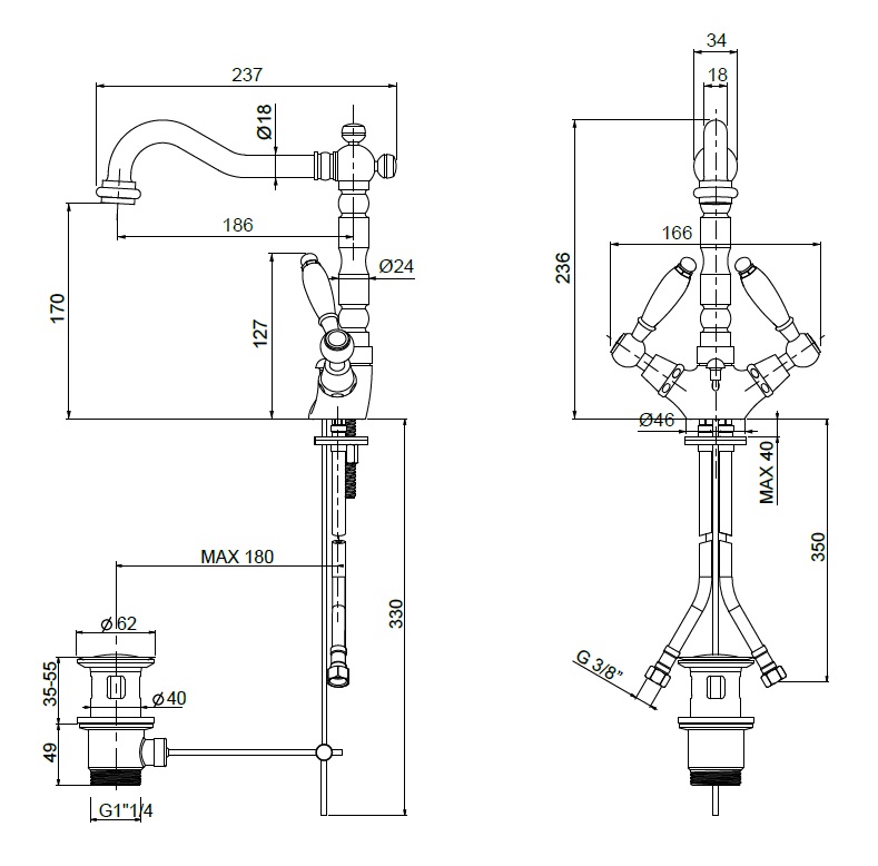 Oioli LIBERTY Bateria umywalkowa jednouchwytowa z korkiem automatycznym Chrom 1172-LR