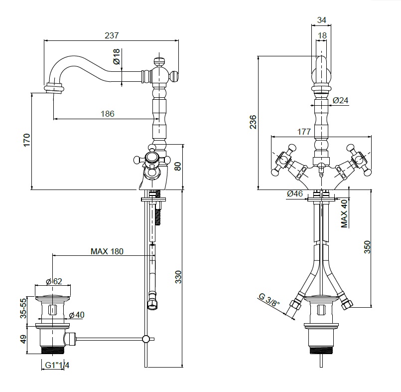 wysokość wylewki: 170 mm