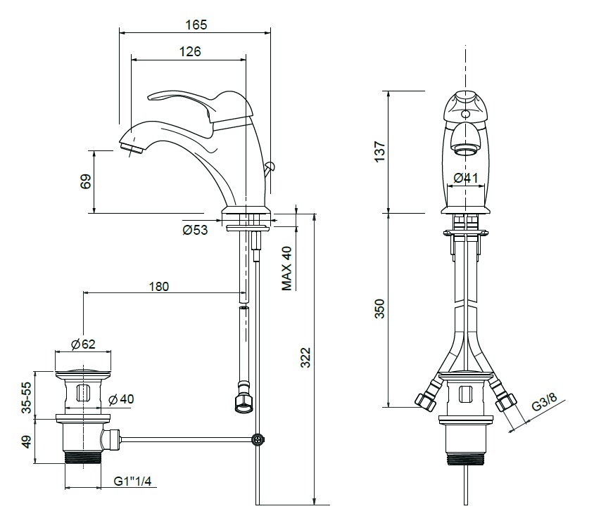 Oioli ARCANA Bateria umywalkowa jednouchwytowa z korkiem automatycznym Chrom 8500