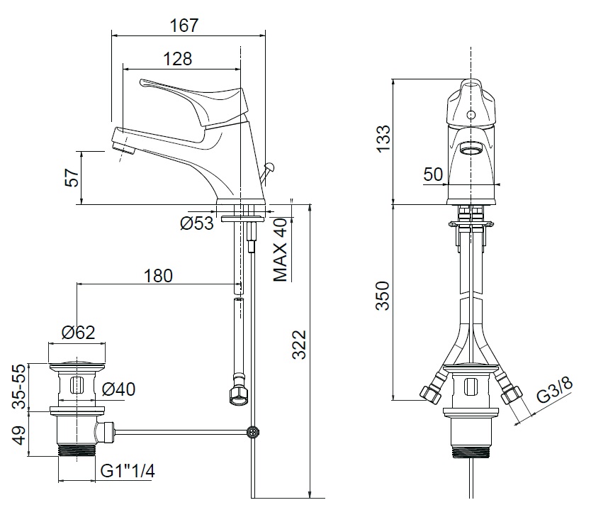 Oioli KAPPA Bateria umywalkowa jednouchwytowa z korkiem automatycznym Chrom 7700