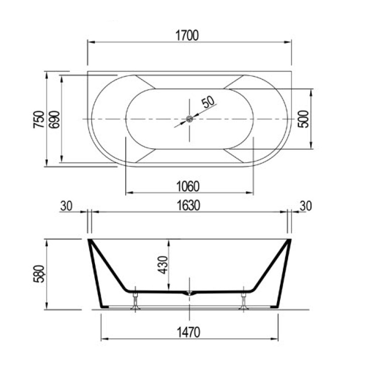 - odpływ umieszczony w środkowej części wanny pozwala na kąpiel we dwoje