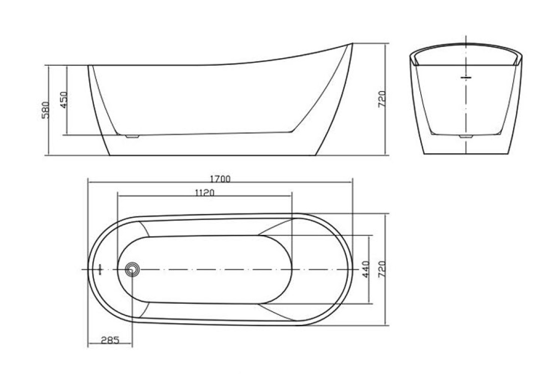 Alanad Gangotri Wanna wolnostojąca 170x72 cm z przelewem szczelinowym Biały AWW-010-170ZP PROMOCJA!!