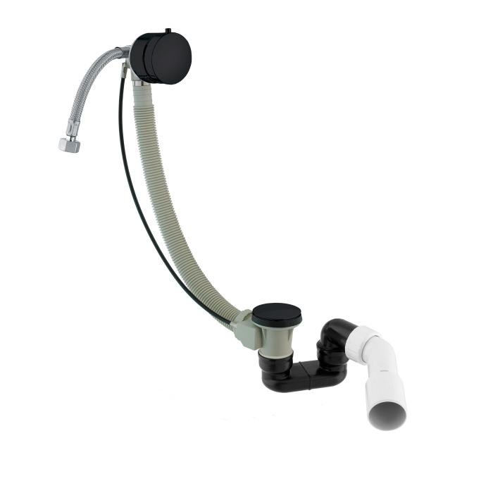 Omnires Syfon wannowy odpływowo-przelewowy z napełnianiem przez przelew i korkiem automatycznym czarny TK132-PLUS-3.43+64-SBL