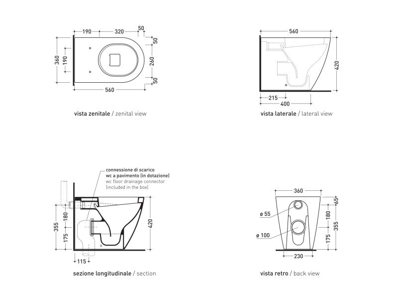 Flaminia Link Miska WC stojąca 560x360 mm Biała z deską zwykłą Czarną LK117+5051CW02NER