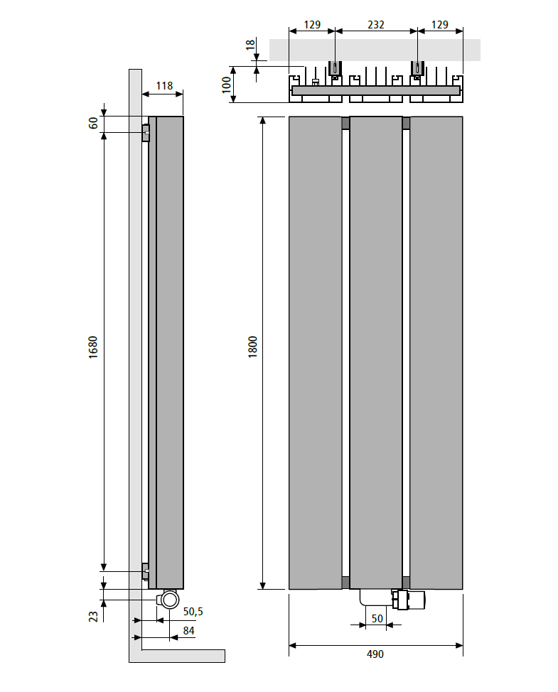 - zawiesia niewidoczne ścienne dostarczane w komplecie z grzejnikiem