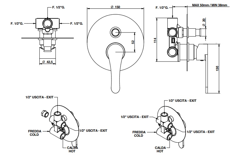 Bongio O\'Clock Bateria wannowa podtynkowa chrom 14529CRPR